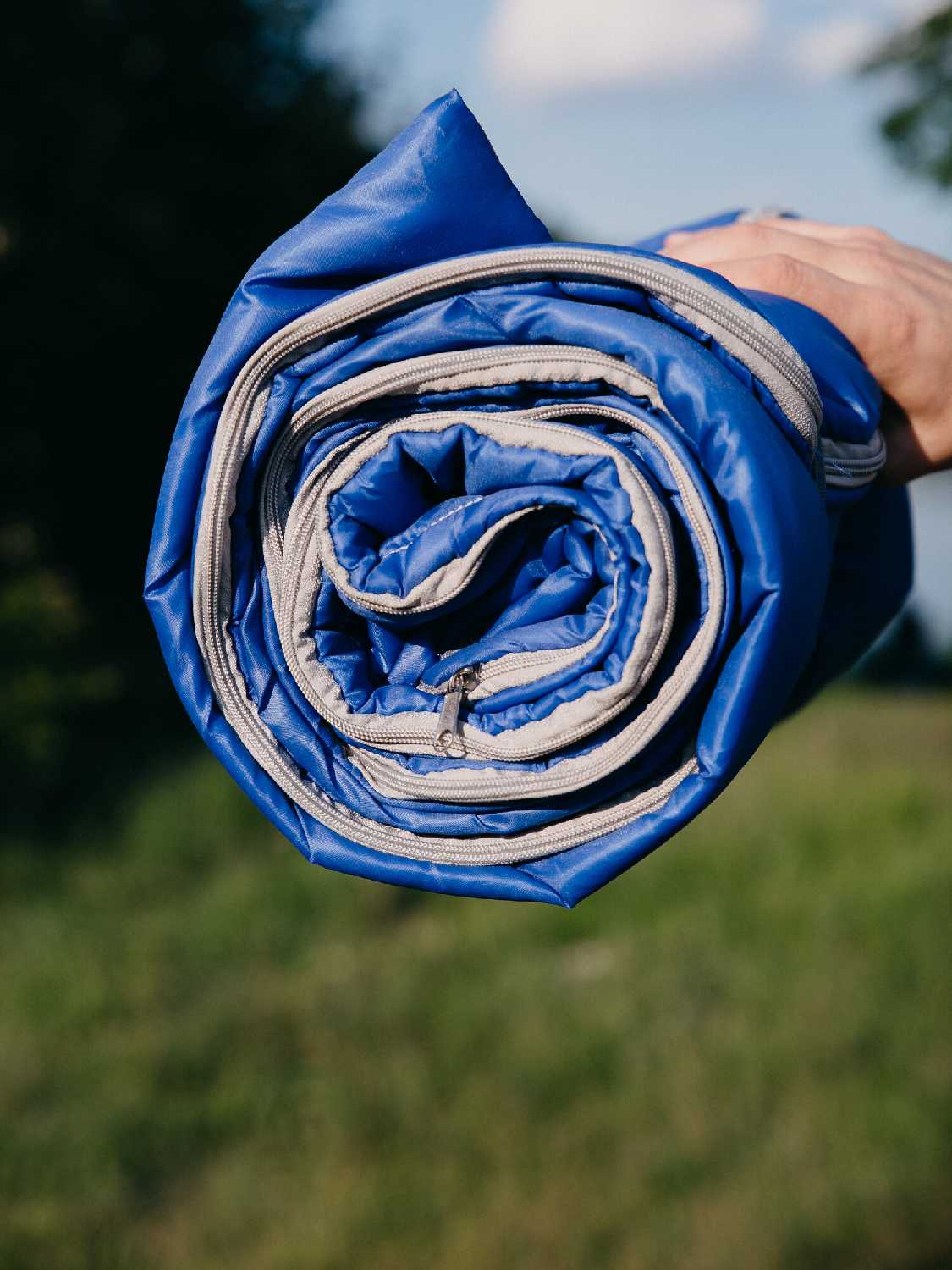 Брала в качестве одеяла, стелить поверх ковриков-пенок в палатке и уже на него класть спальные мешки. Но, пока используем, как спальный мешок (замена основному), тёплый, но шуршит и не очень приятная ткань для спальника.