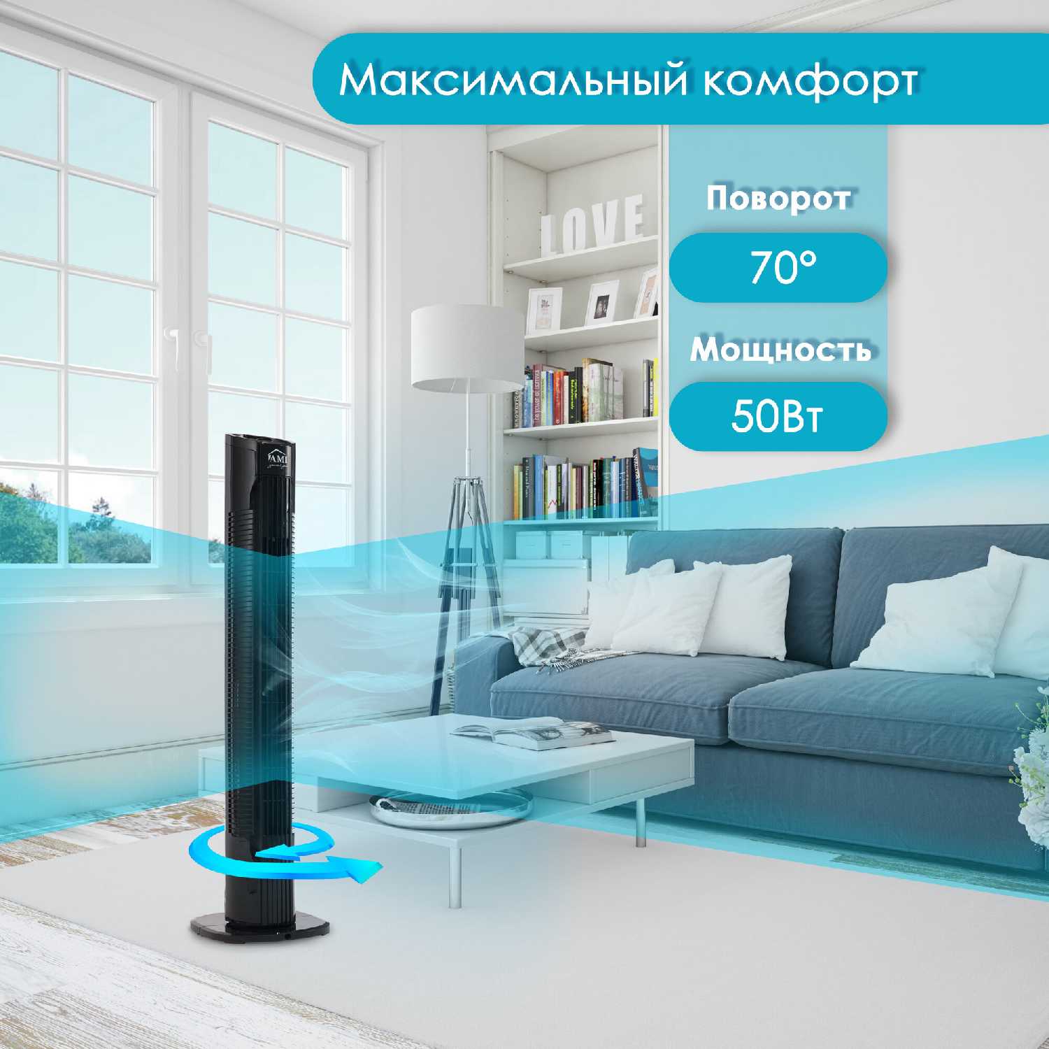 Колонная форма делает его более компактным и менее громоздким, чем круглые вентиляторы, экономя пространство в небольших комнатах. Наличие пульта ДУ и поворотного механизма обеспечивает удобное управление без необходимости вставать. Пользователи отмечают, что обдув направленный и интенсивный на близком расстоянии, создавая ощущение "морозного" ветра. Однако для больших помещений стандартные модели часто мощнее и эффективнее, так как этот вентилятор рассчитан на локальное использование.