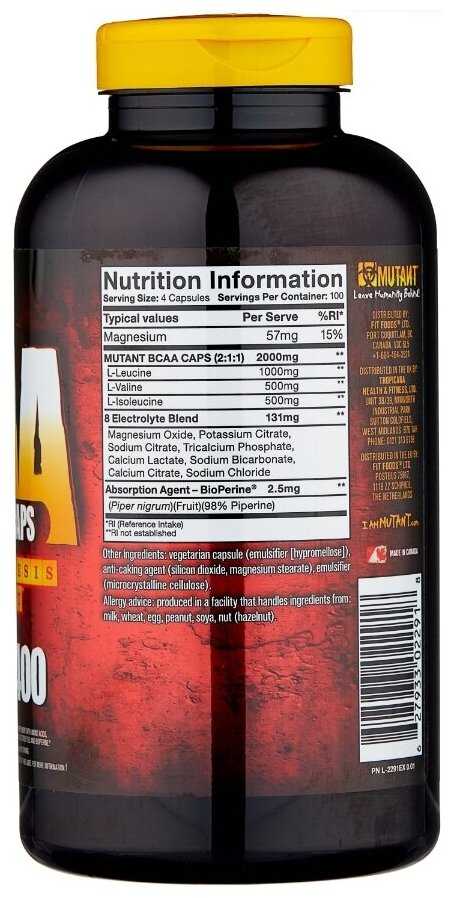 7.3/10 балловMutant Аминокислоты BCAA 2:1:1 с электролитами 400 капсул Mutant