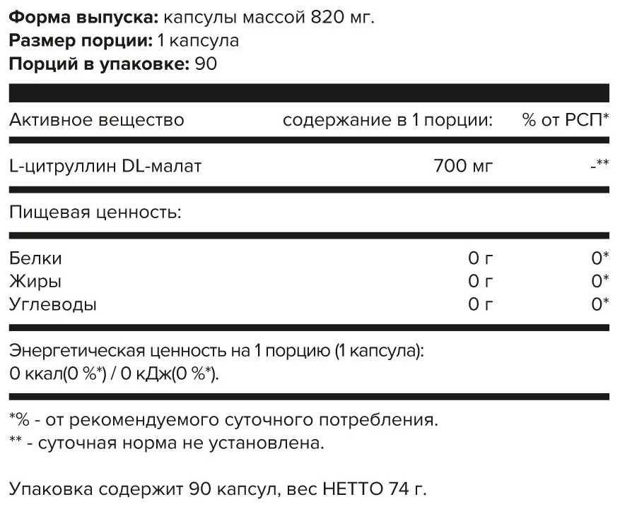 aTech Nutrition CITRULLINE MALATE/ Цитруллина малат 820мг/ Аминокислота в капсулах