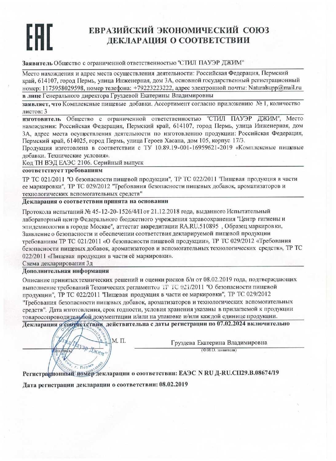 - основной ингредиент: глицин