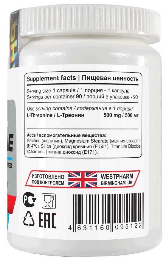 WestPharm Threonine 90 капсул, 500 мг