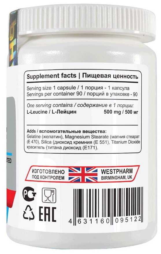 WestPharm Leucine 90 капсул, 500 мг