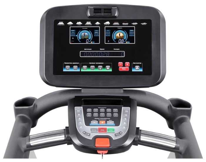 - + Широкое полотно, профессиональная система амортизации, устойчивая дека и мощный двигатель позволяют эксплуатировать тренажер в интенсивном режиме длительное время. Отвечает нуждам разных пользователей. Данная модель оснащена консолью с удобным, понятным интерфейсом.