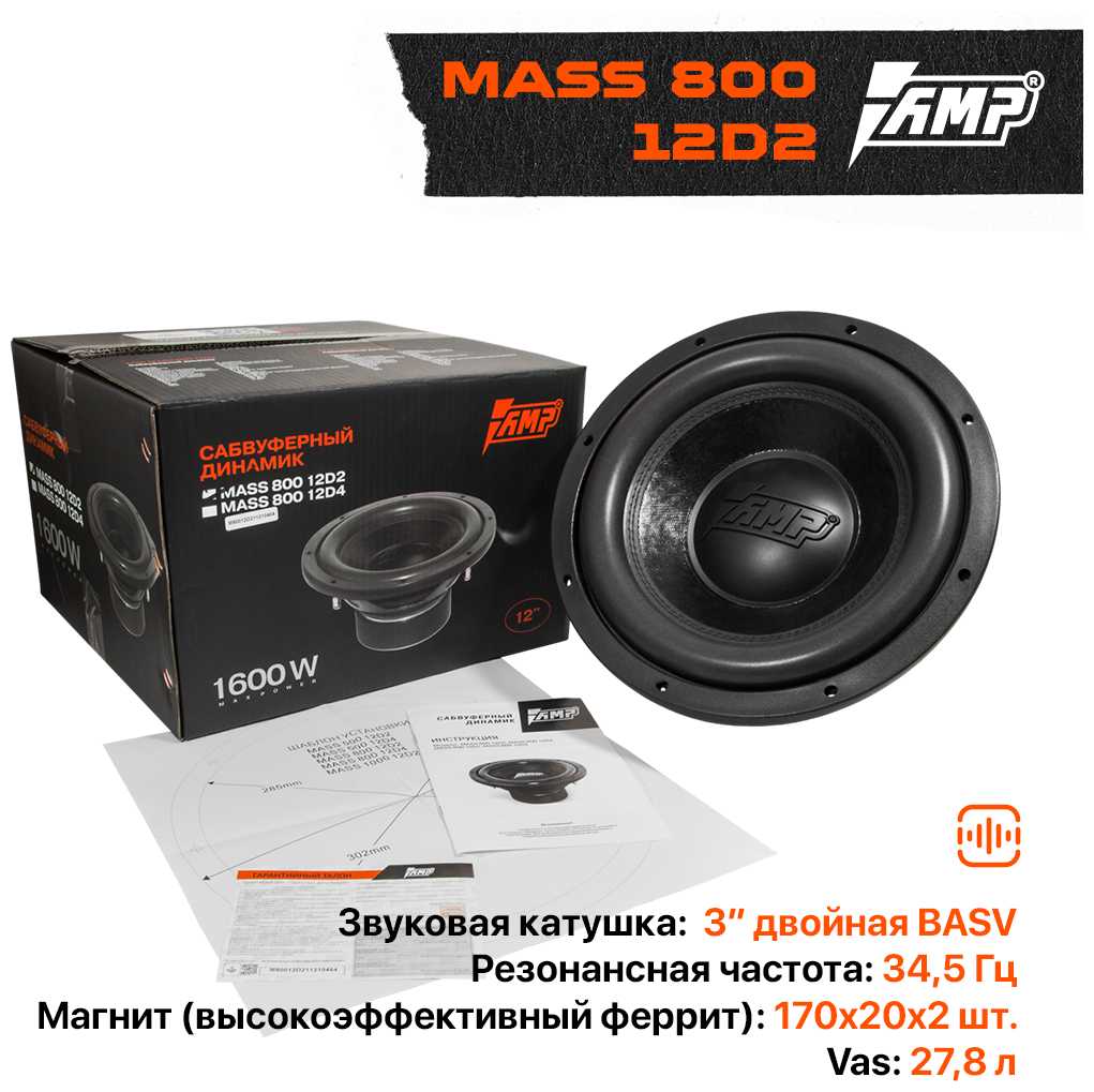 Отзывы о Сабвуферный динамик AMP MASS 500 12D2 (2+2 Ом, rms500)