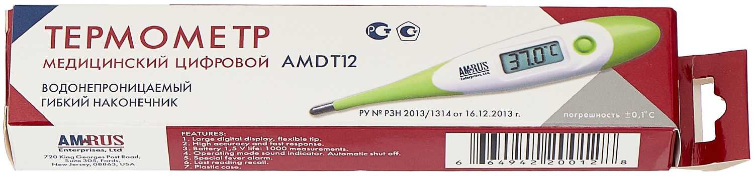 Я купила два термометра Amrus AMDT-12. Я в течении двух недель пыталась померить температуру, оба показывали 35.5-35.7. В конце концов я приобрела ртутный термометр и решила померить одновременно. Так вот пока ртутный намерил 37.0 (я заболела), электронный уже отключился и при повторном включении показал что он намерил 36.7