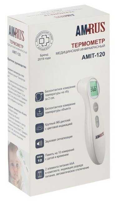| Подробная комплектация : | Термометр инфракрасный, Пластмассовый футляр, 2 элемента питания ААА Руководство по эксплуатации, Коробка |