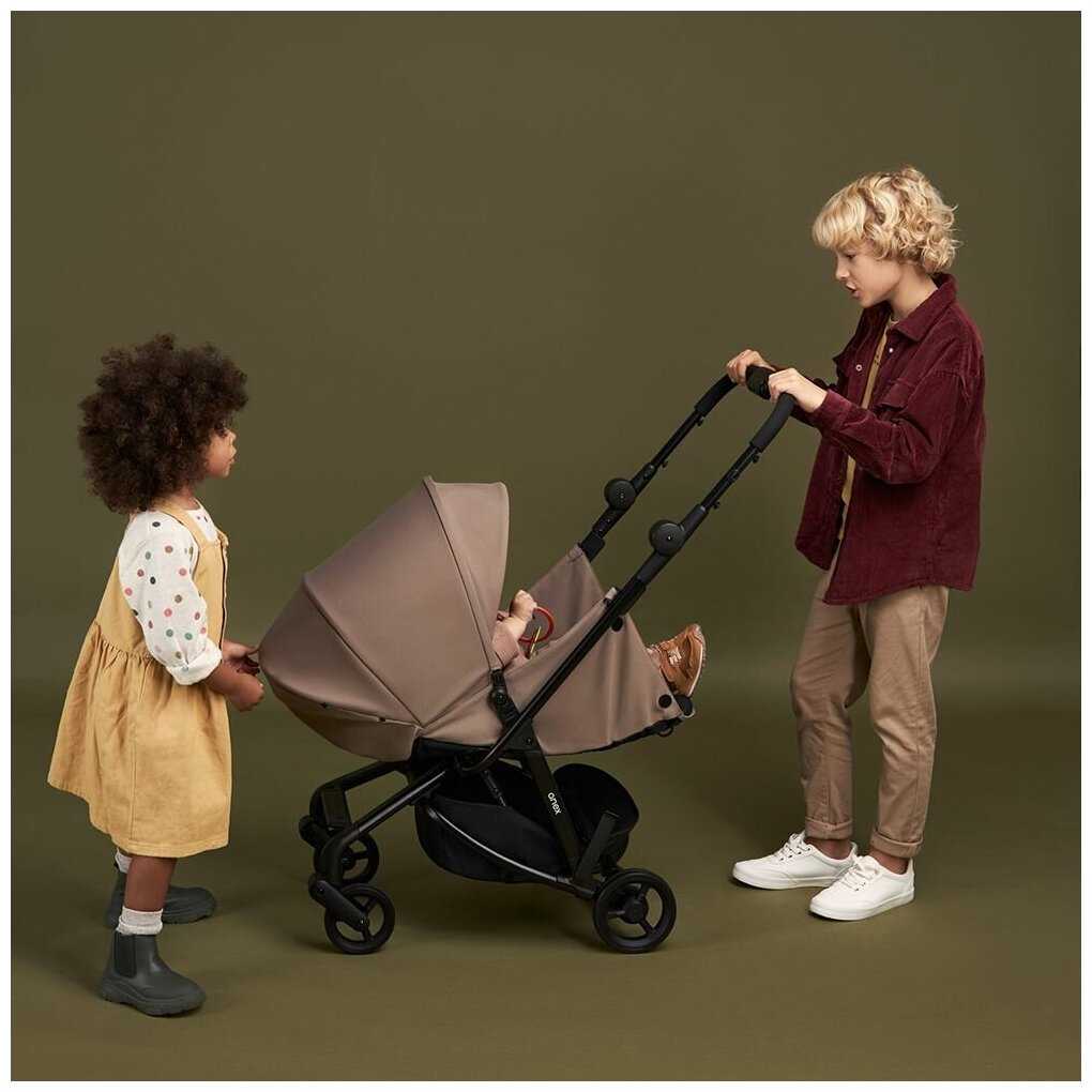 Шасси коляски с 4 колёсами и корзинкой для покупок. Сиденье с капюшоном и бампером. Съемная подушечка под голову.