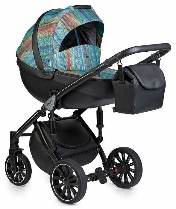 - + Красиві Колеса), Трохи легша за аналоги. Корзина з низу яка защепається.На мою думку, не погана тканина, погано маститься.