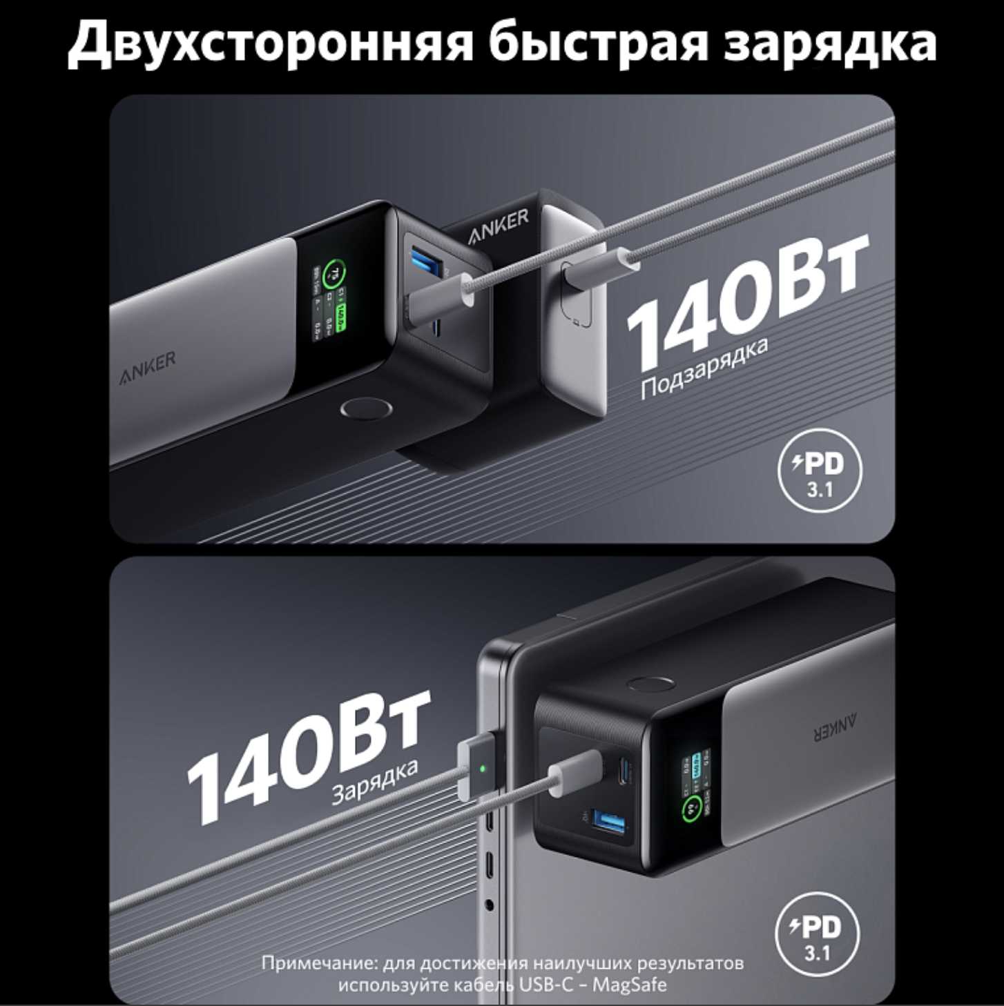 - + Очень мощный. Айфон 16 pro max за 15 мин с кабелем 140kw зарядает за 25-30 мин почти до максимума. Сам аккумулятор заряжается, очень быстро через type c. Хватает на долго и на много устройств- проверено. Одного заряда хватает на несколько айфонов и на MacBook pro. Имеется электронное табло которое показывает вам все.