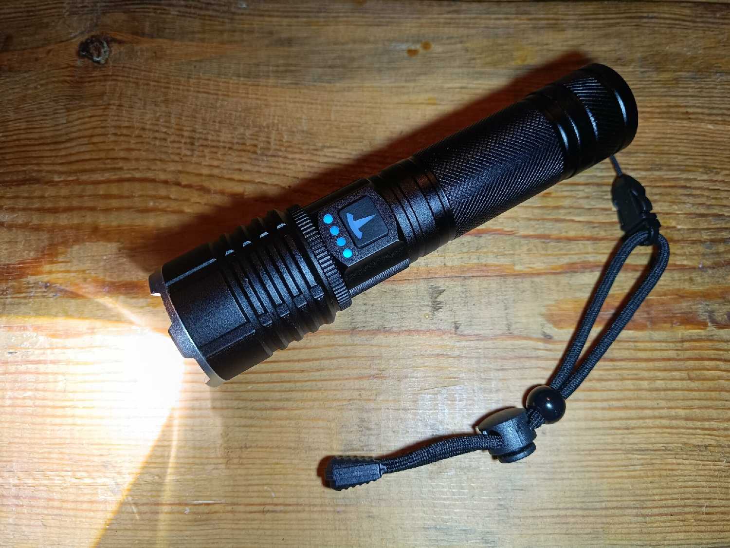 - + отличный фонарик для бытового использования батарею держит хорошо. светит ярко.