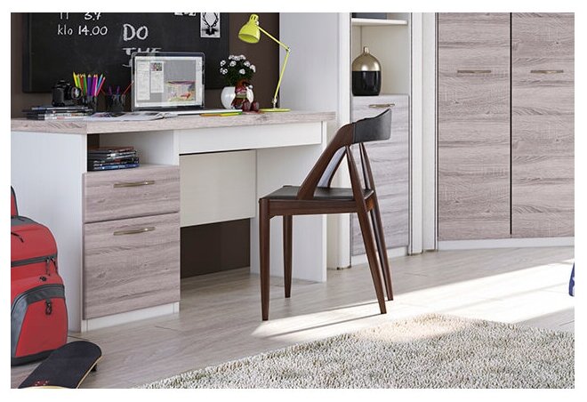 | Дополнительная информация : | С помощью письменного стола Оливия возможно организовать рабочую или учебную зону в молодёжной дополнительно используя такие элементы коллекции Оливия как кровати 90 и 120 также предметы из шкафной и комодной групп. Стол письменный - прямой. Конструкция стола многофункциональна состоит из столешницы (ширина – 1200 мм) под верхним щитом находится выдвижной ящик (без ручки) для хранения учебных принадлежностей канцелярии и других предметов слева располагается выдвижной ящик с ручкой ниша за глухой дверью. Дверца распашная крепится на петли к боковине. Основные характеристики: -фасад - ЛДСП (18 мм) цвет – Дуб анкона, -металлические ручки (сплав цинка и алюминия), -шариковые направляющие полного выдвижения, -столешница в цвете Дуб анкона, -тумба стола письменного может располагаться только слева. |