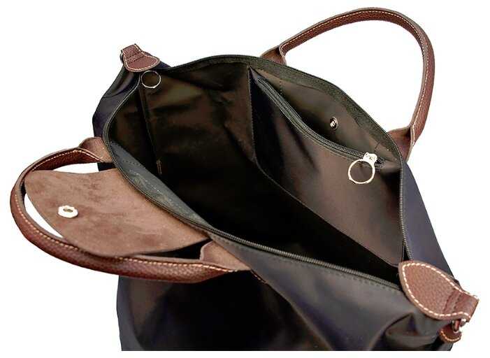 - + Очень хорошего качества. Все швы обработаны внутри сумки окантованы. Ткань плотная, не матерчатая, водоотталкивающая.
