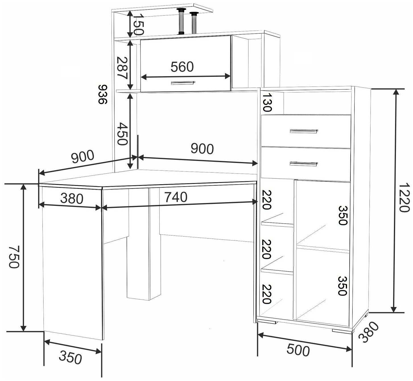 Дополнительная информация : | угловой стол с надстройкой, ящиками и полками |