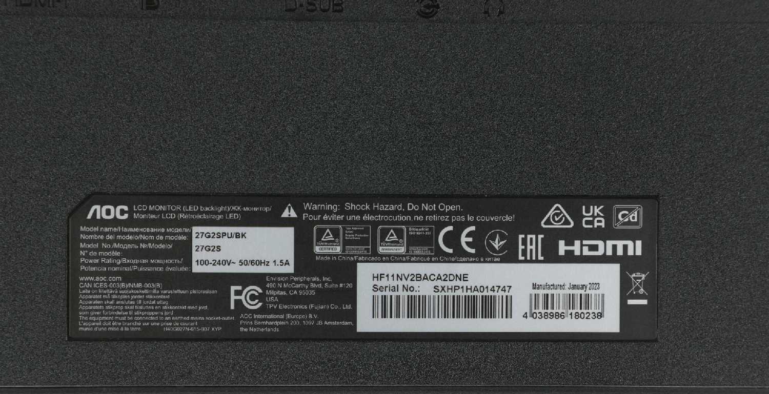 127 отзывов пользователей o AOC 27G2SPU (27G2SPU/BK)