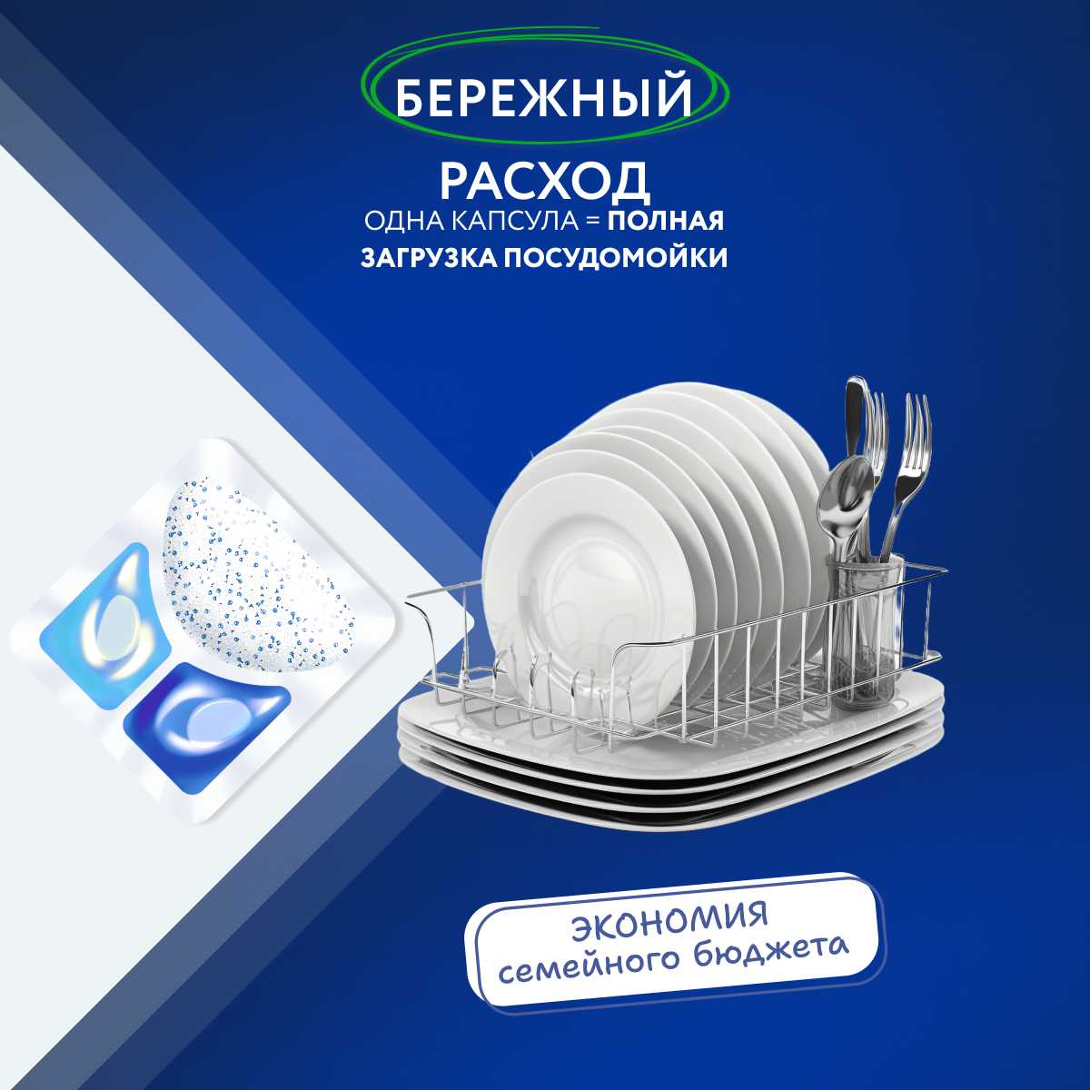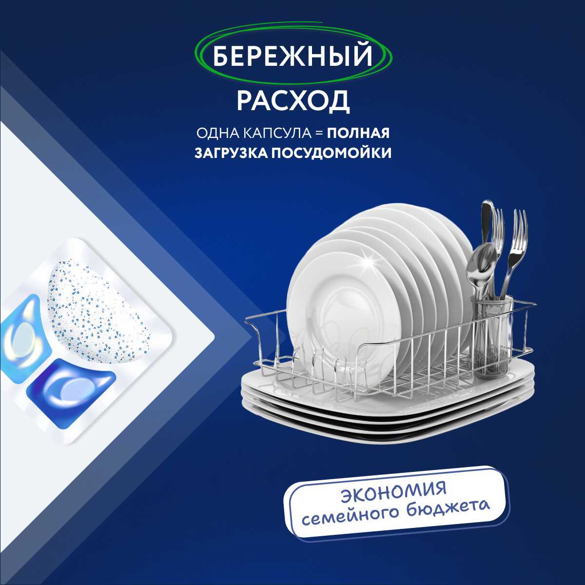 Для стандартной загрузки 45 см пользователи рекомендуют минимум 2 капсулы. При использовании одной капсулы посуда часто остаётся с остатками пищи и жира, особенно в машинах с вертикальной загрузкой. -