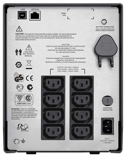 | Особенности : | возможность замены батарей, горячая замена батарей, звуковая сигнализация, подключение дополнительных батарей, фильтрация помех, холодный старт |