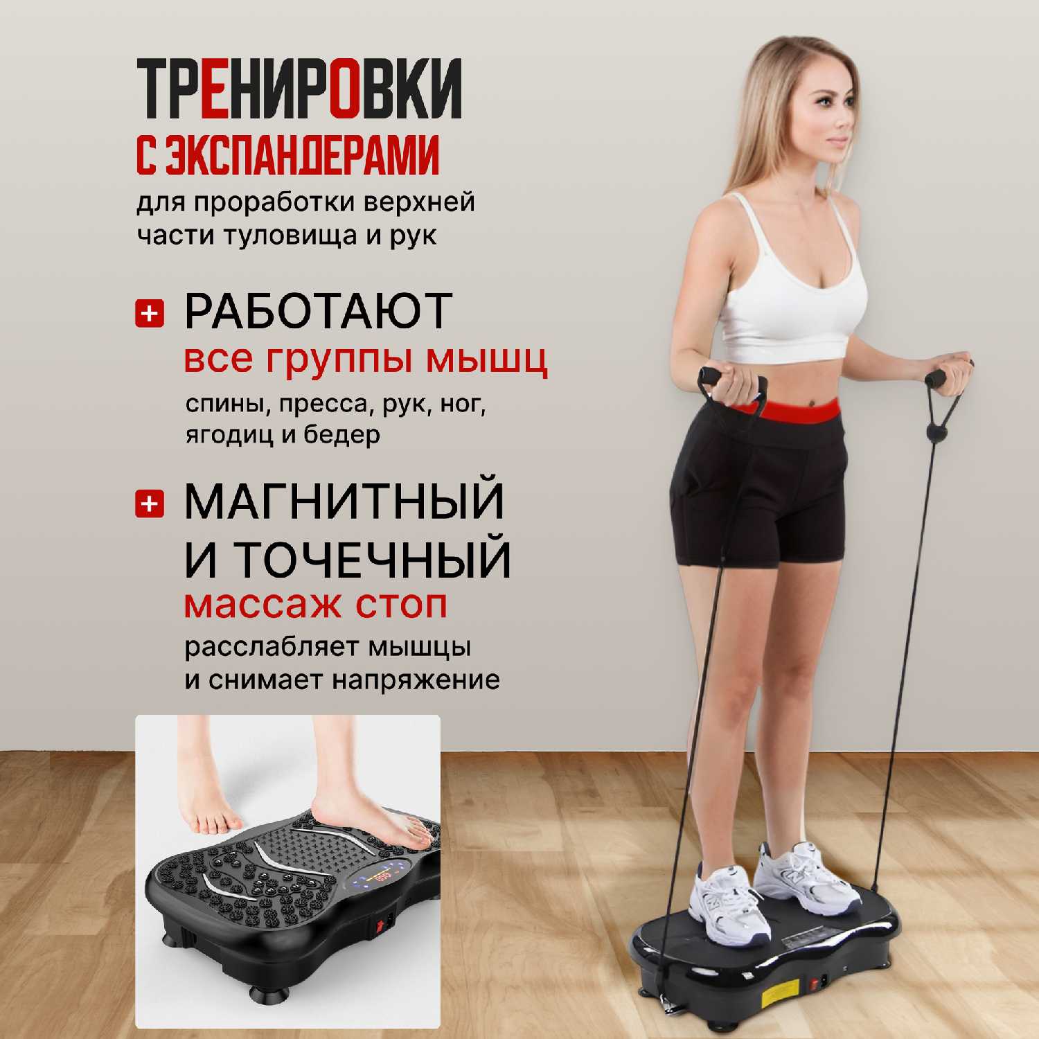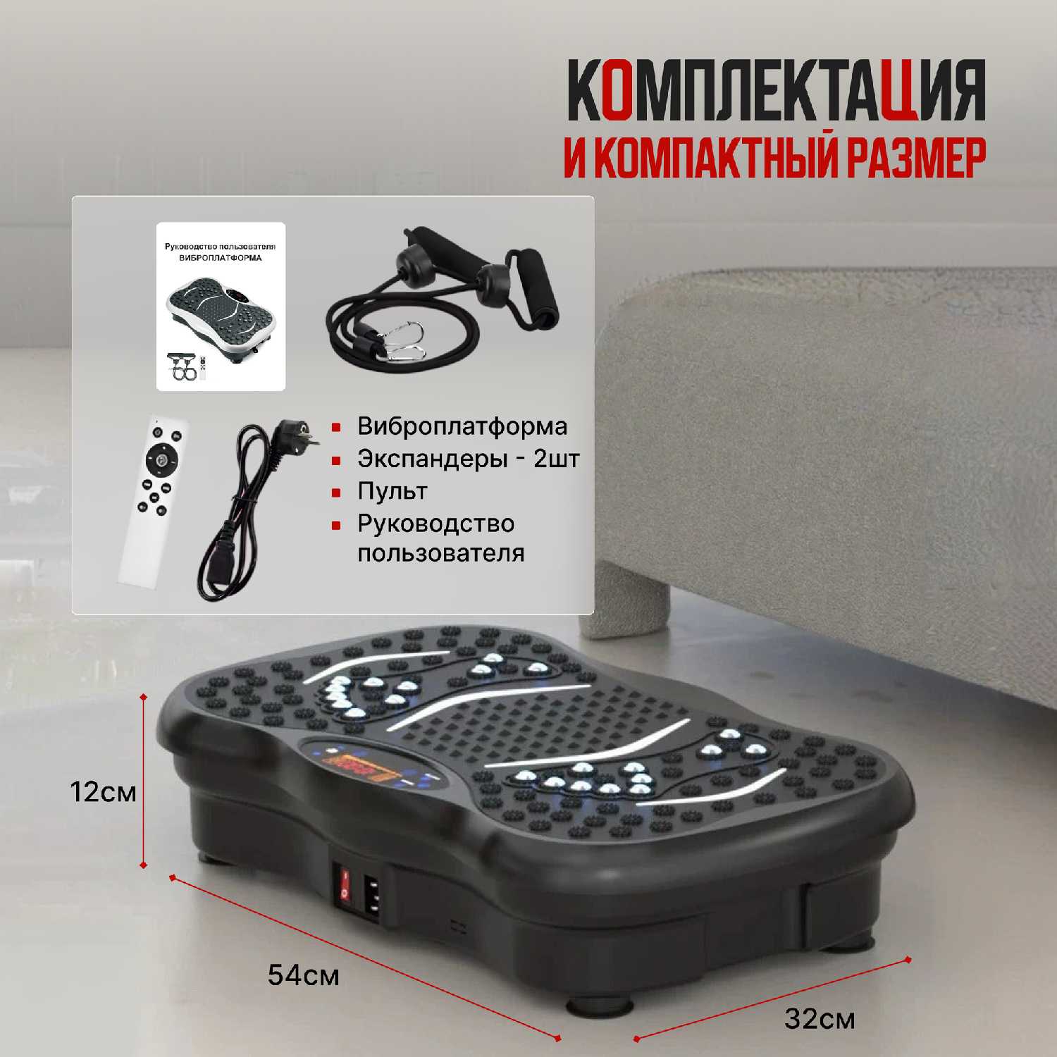 | Подробная комплектация : | виброплатформа, шнур, 2 эспандера, инструкция на русском языке, пульт |