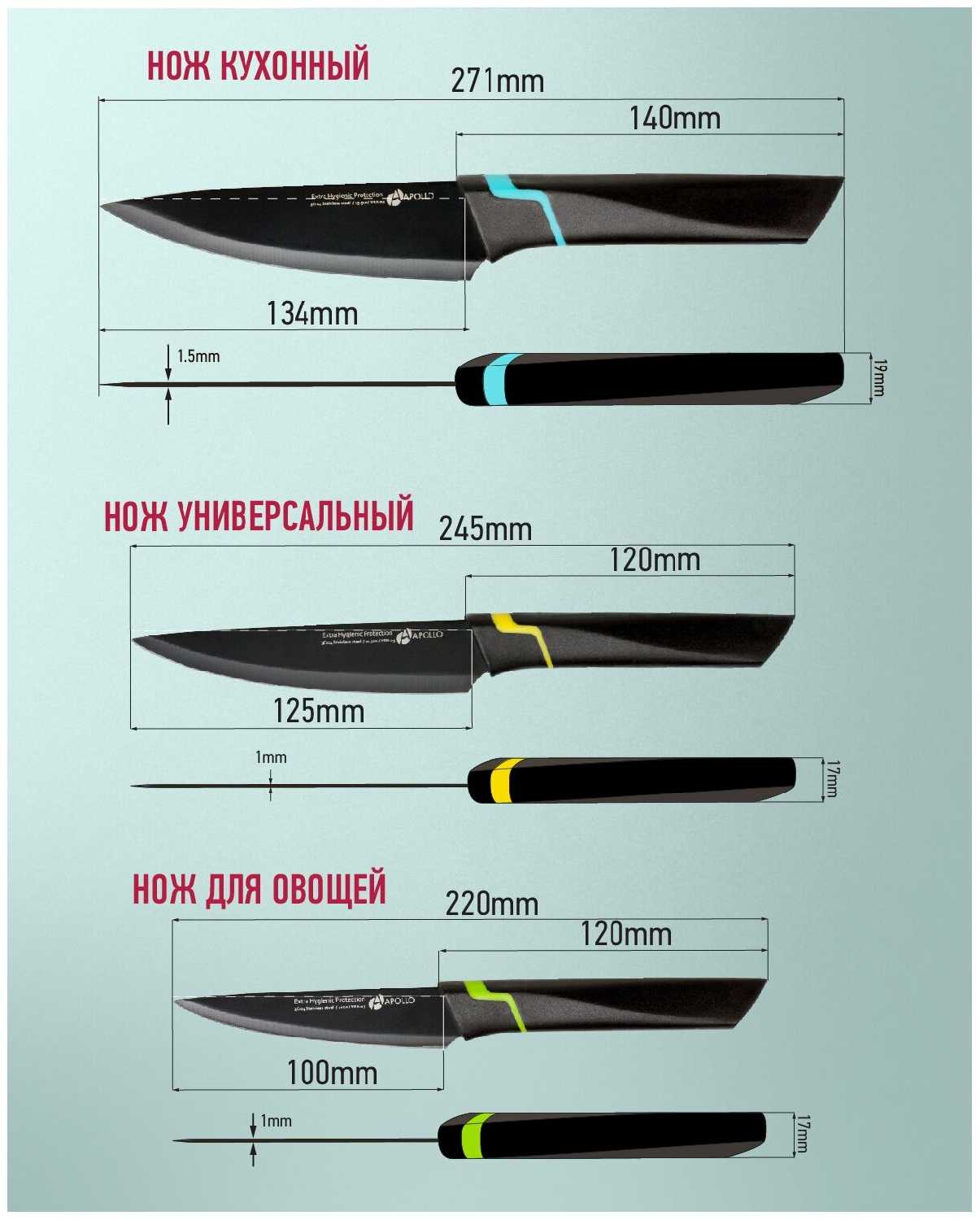 Комплектация : | Нож для овощей, 10 см, универсальный нож, 12, 5 см, кухонный нож 13, 5 см. |