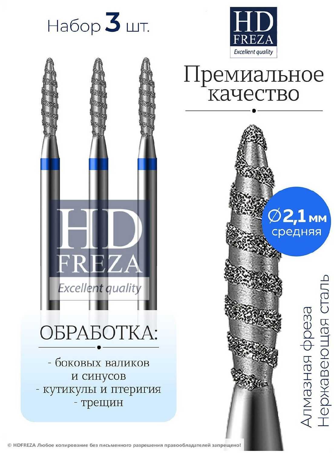 HDFREZA Фреза для маникюра и педикюра алмазная 804 244 524 021 Средняя синяя торнадо (упаковка 3 шт)