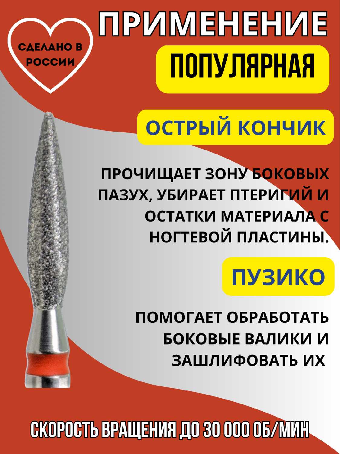 HDFREZA Фреза для маникюра и педикюра алмазная 804 244 514 021 Тонкая красная торнадо (упаковка 3 шт)