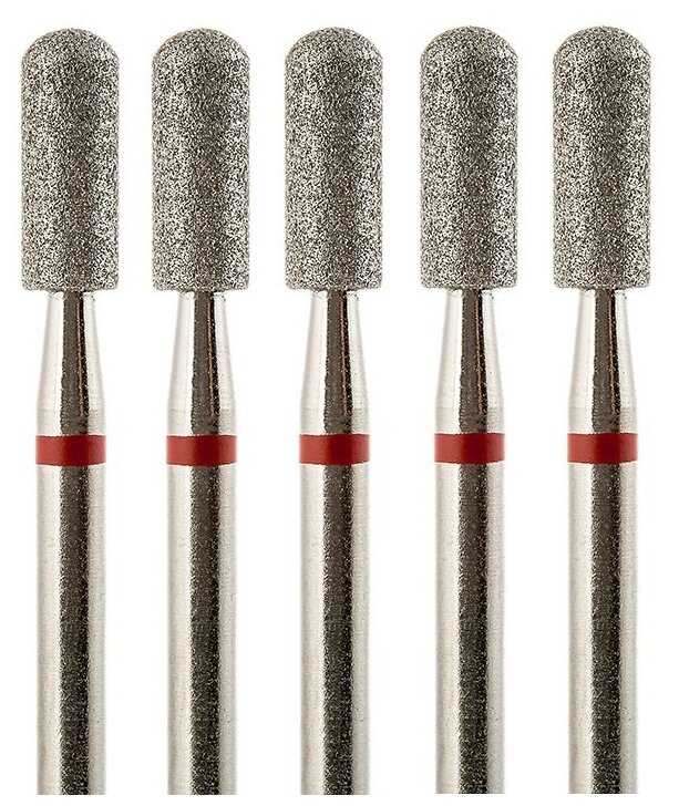 Muhle Manikure Фреза для маникюра и педикюра алмазная 806 141 514 031 Тонкая красная цилиндр закругленный (торпеда) (упаковка 5 шт)