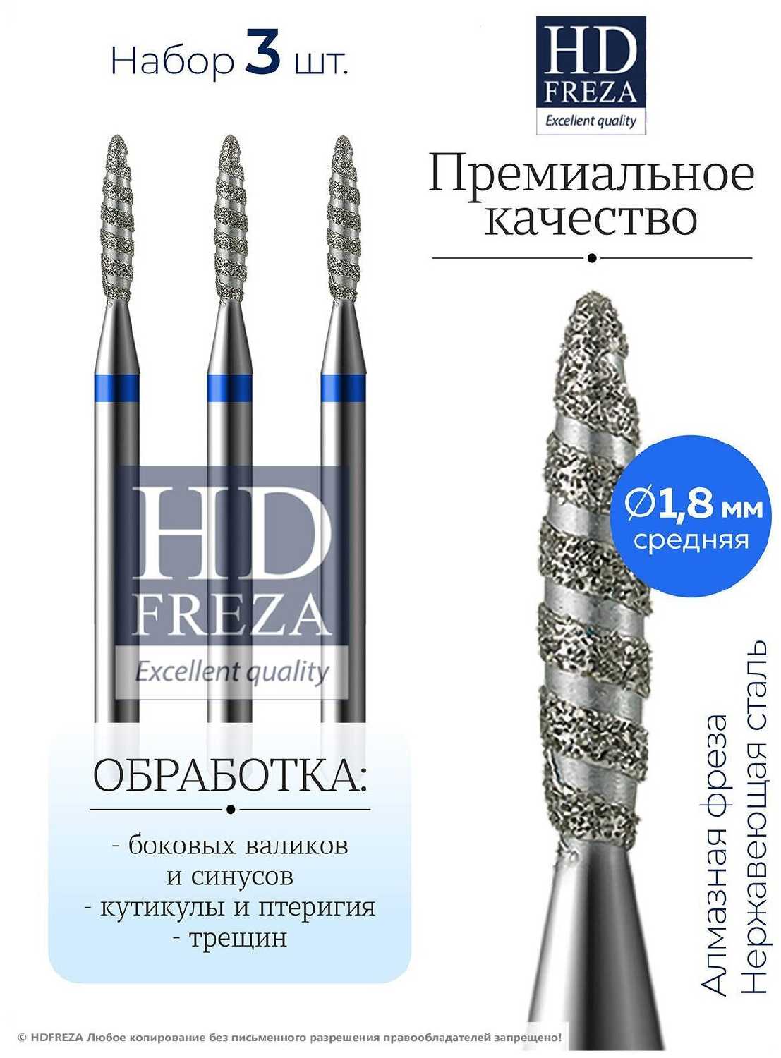HDFREZA Фреза для маникюра и педикюра алмазная 804 244 524 018 Средняя синяя торнадо (упаковка 3 шт)