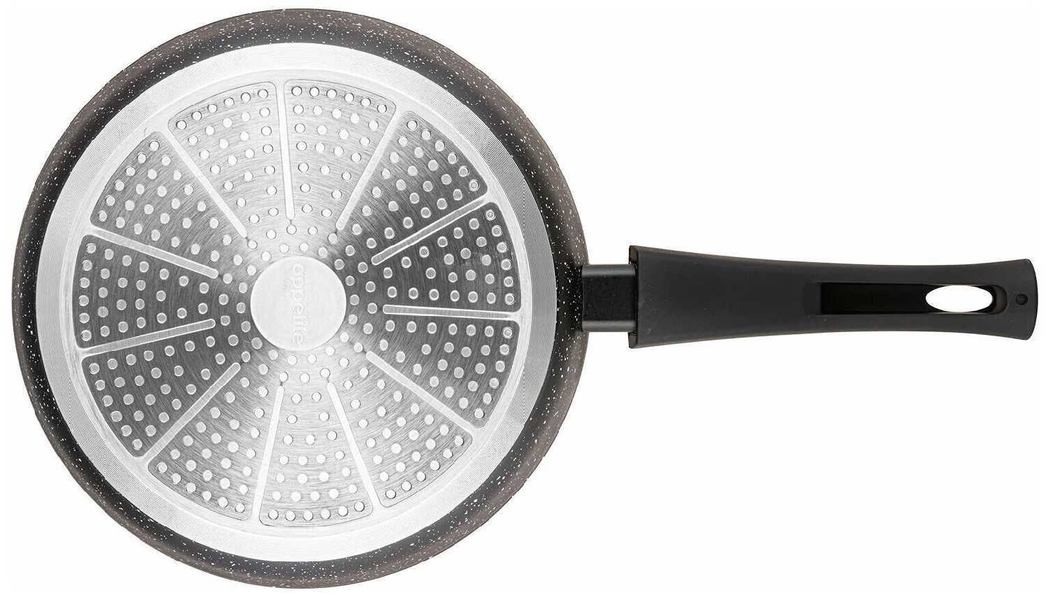 - Ручка легко демонтируется, что позволяет использовать сковороду как форму для запекания.