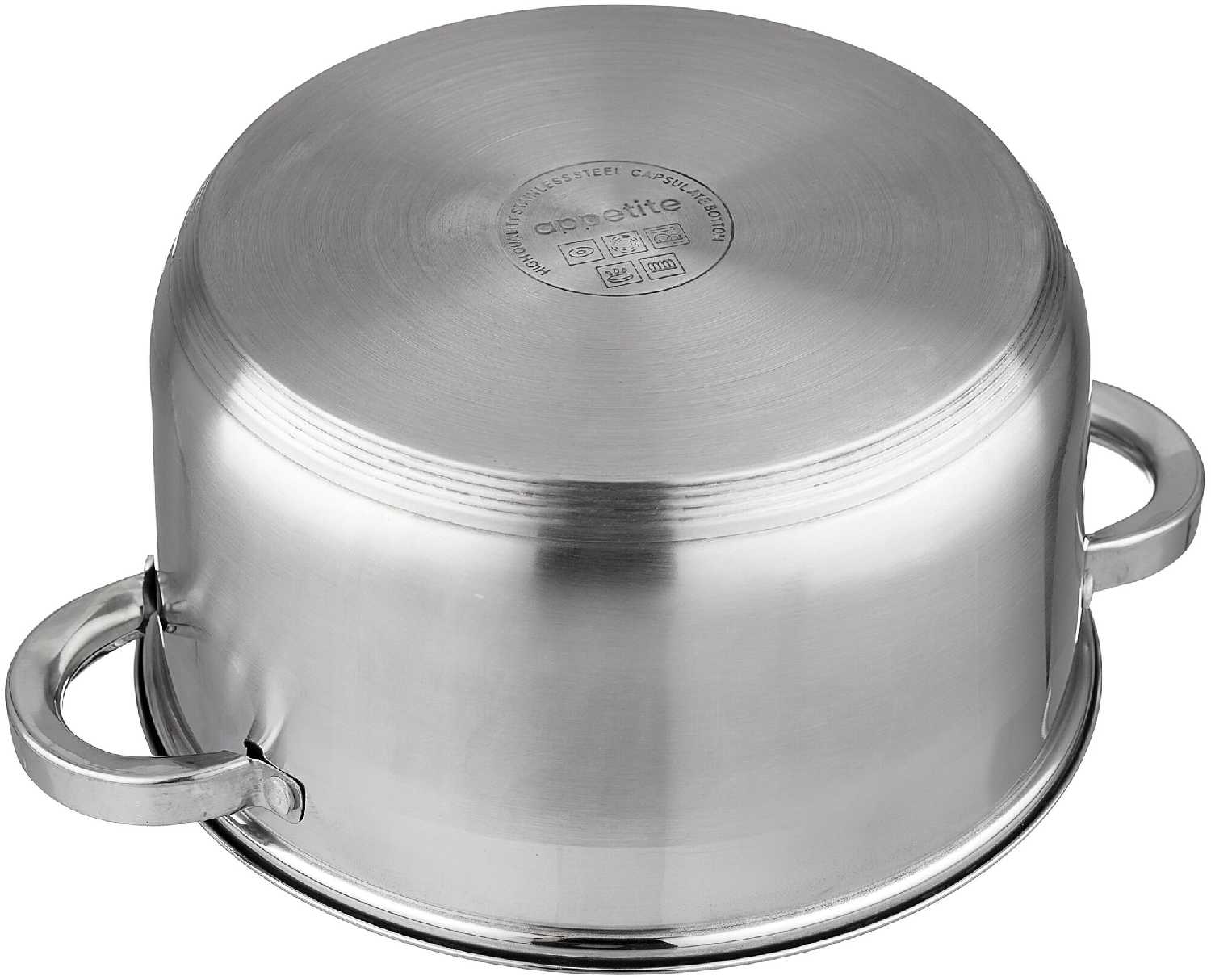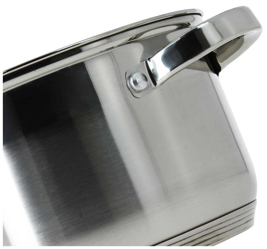 | Дополнительная информация : | кастрюля имеет трехслойное термоаккумулирующее дно, внутри имеется мерная шкала, крышка выполнена из термостойкого стекла, ручки выполнены из нержавеющей стали |