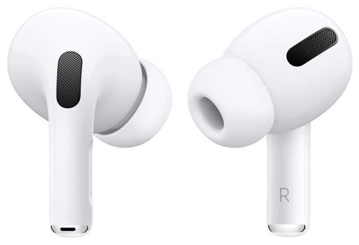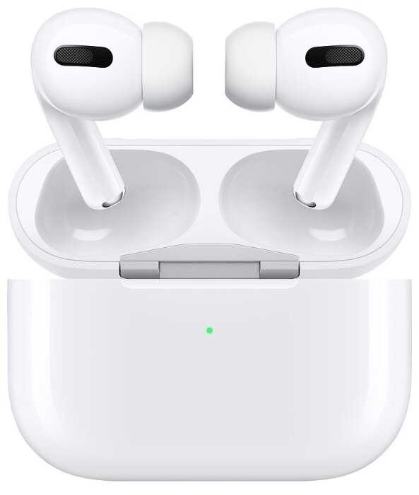 | Комплектация : | Наушники AirPods Pro, беспроводной зарядный футляр, силиконовые вкладыши (три размера), кабель Lightning/USB‑C, документация |