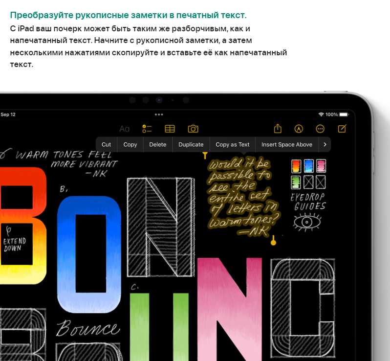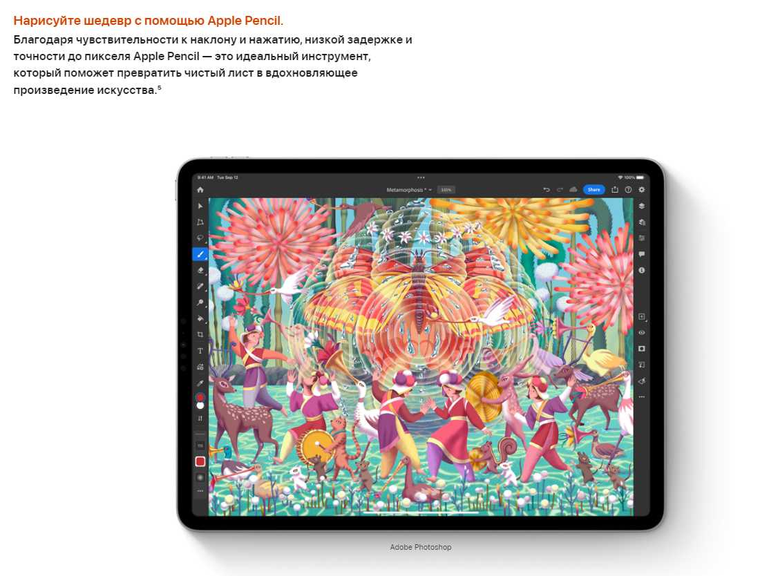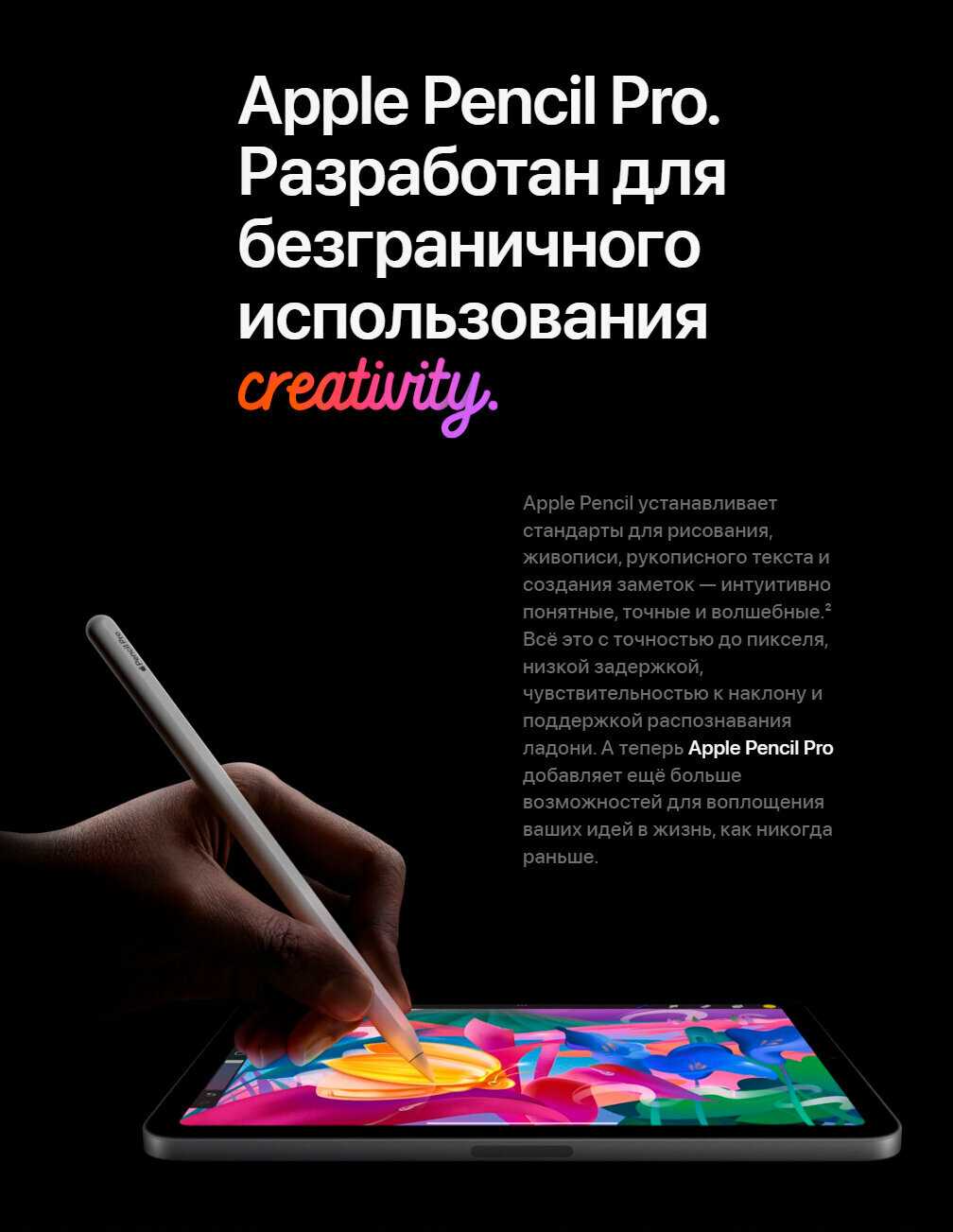 - Профессиональная поддержка Apple Pencil: