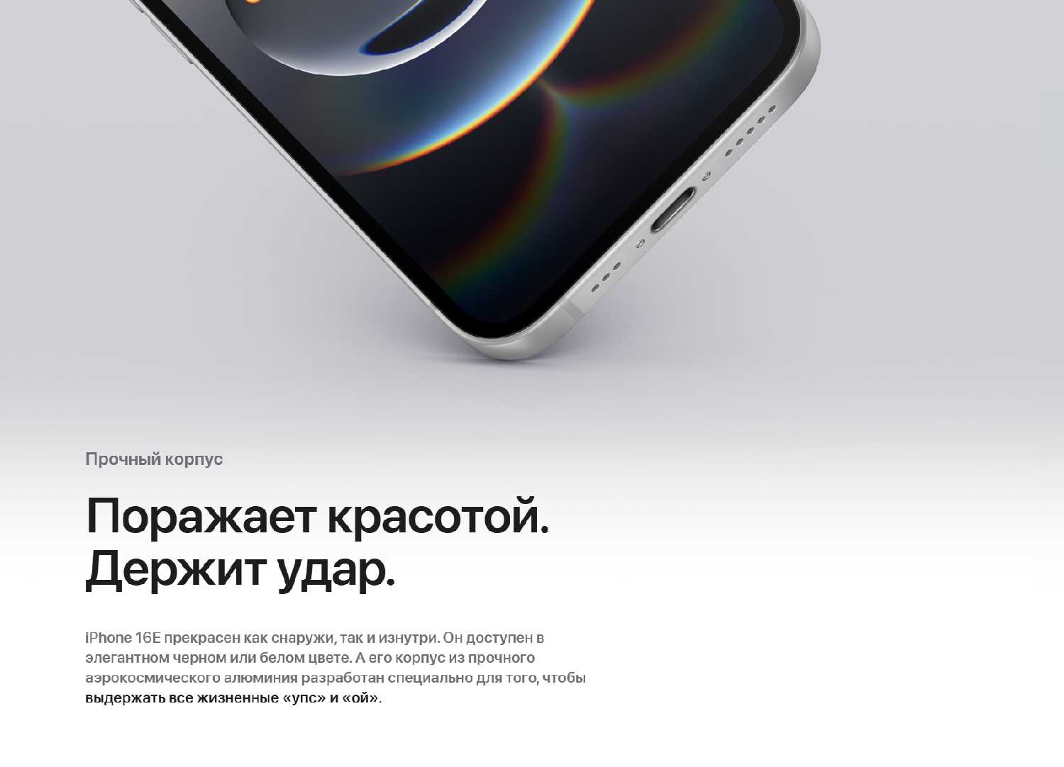 - Производительность практически та же, что у полноценного iPhone 16 (процессор аналогичный)