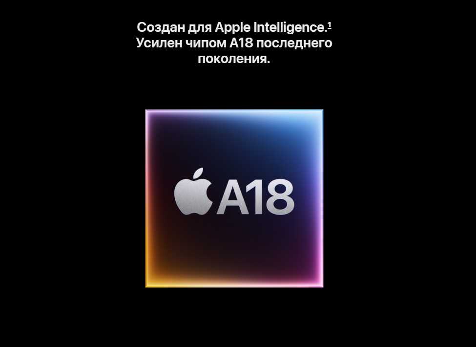 - Исключительная производительность благодаря чипу A18 и 8 ГБ оперативной памяти:
