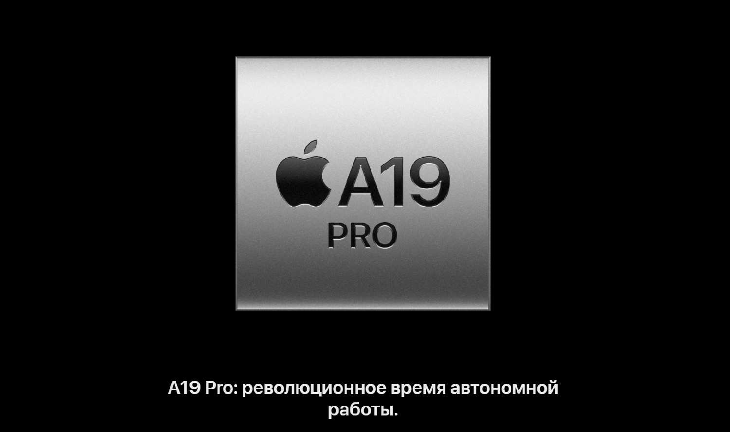 Под капотом нового флагмана бьется сердце — чип A19 Pro. Это первый мобильный процессор Apple, изготовленный по 3-нанометровому технологическому процессу, и его фокус смещен не только на raw-производительность, но и на эффективность работы с искусственным интеллектом.
