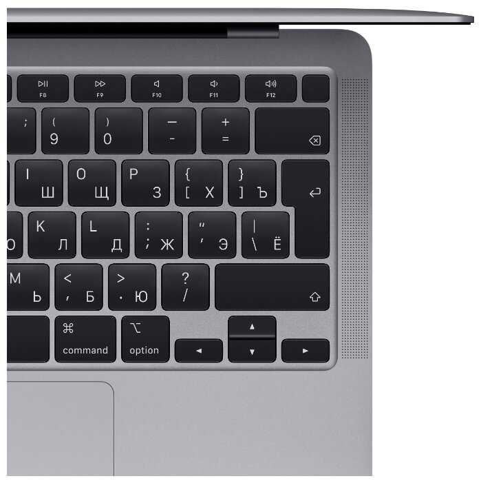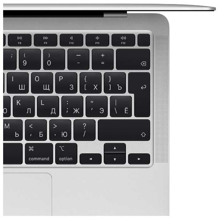 - Тачпад стеклянный, с тактильной отдачей и жестами (свайпы для Mission Control); заменяет мышь в 90% задач.