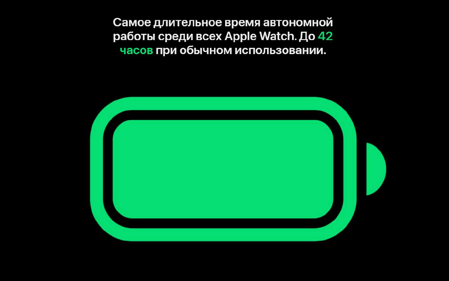 - Выдающаяся автономность, кардинально отличающаяся от обычных моделей Apple Watch: