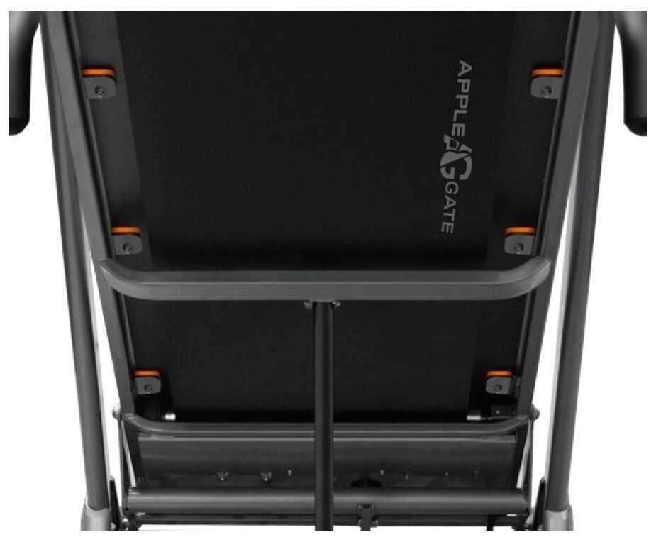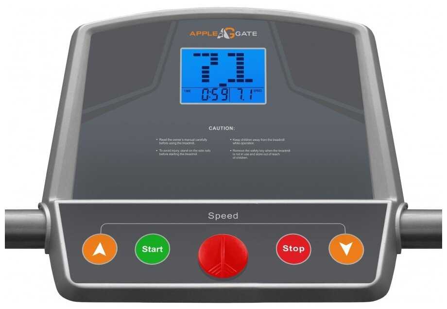 пиковая мощность: 265 л.с., беговое полотно: двухслойное антискользящее, система амортизации: 8 плоских эластомеров, LCD дисплей диагональю 7 см, размер в сложенном виде (ДхШхВ) 54х70х152 см, питание: сеть 220 Вольт