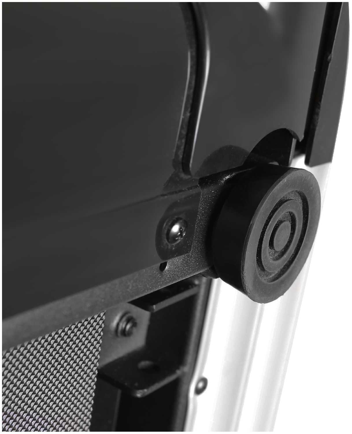 Дорожка получила высокие оценки за компактность и продуманную конструкцию, позволяющую хранить её в ограниченном пространстве – под кроватью, диваном или за дверью. Пользователи особо отмечают встроенные транспортировочные ролики, облегчающие перемещение, хотя девушкам 26-килограммовый вес даётся тяжело. Ширина бегового полотна (110х40 см по отзывам) комфортна для людей ростом до 170-175 см, обеспечивая устойчивость при ходьбе без необходимости ловить баланс. Отсутствие поручней, изначально воспринятое как минус, оказалось плюсом для экономии места и визуальной лёгкости. Значимым преимуществом стала интегрированная подставка под ноутбук или телефон – это позволяет совмещать тренировки с работой или просмотром контента, трансформируя пассивные занятия в активные. Однако задние резиновые накладки часто задеваются ногами во время движения и быстро приходят в негодность.
