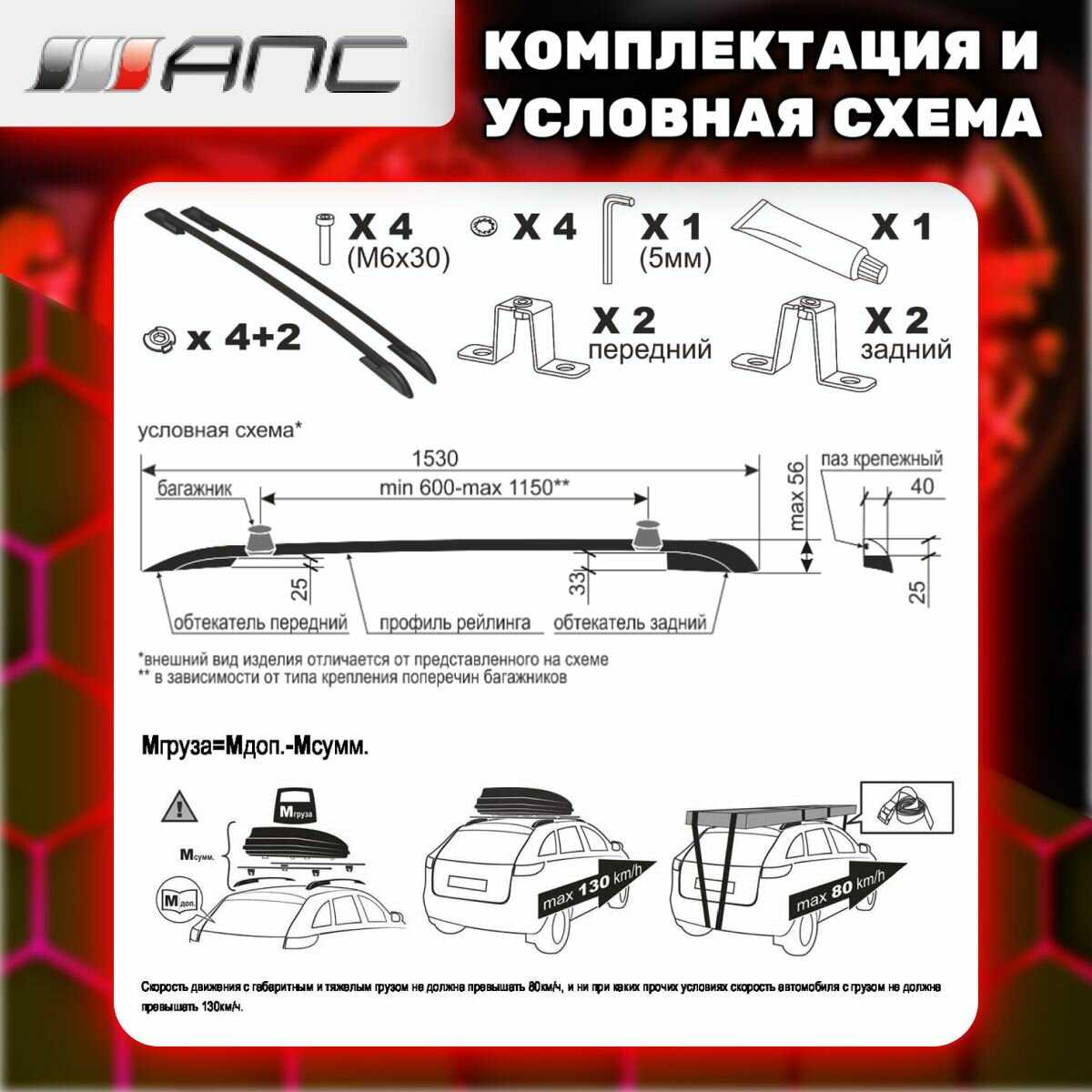 Установка : | на рейлинги, на штатное место |