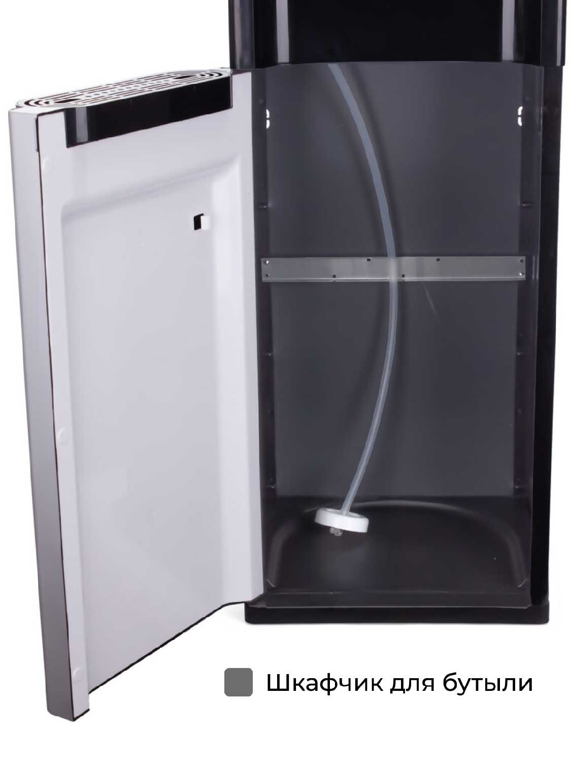 - + хороший кулер. Можно ставить любую емкость с водой, необязательно покупать дорогую воду в 19 л бутылях.