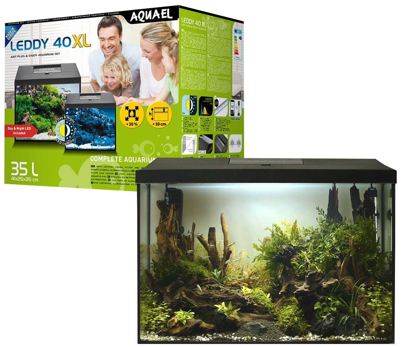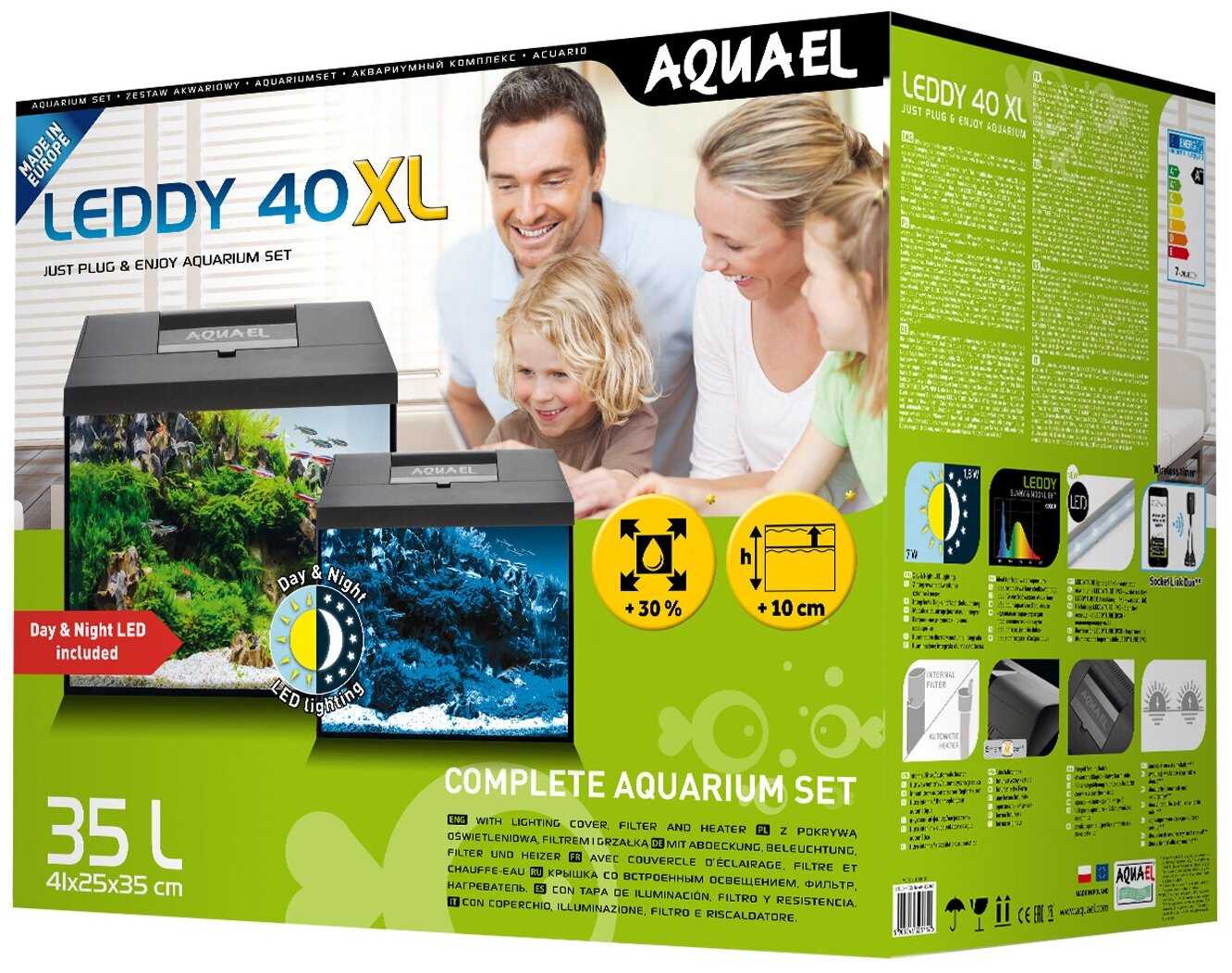Характеристи Aquael LEDDY SET DAY & NIGHT XL 2.0 40 черный (35 л)