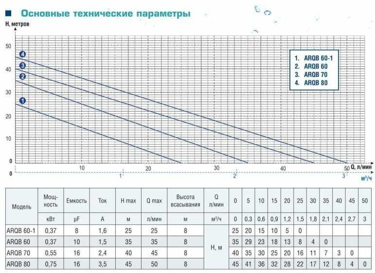 - максимальный напор: 40 м
