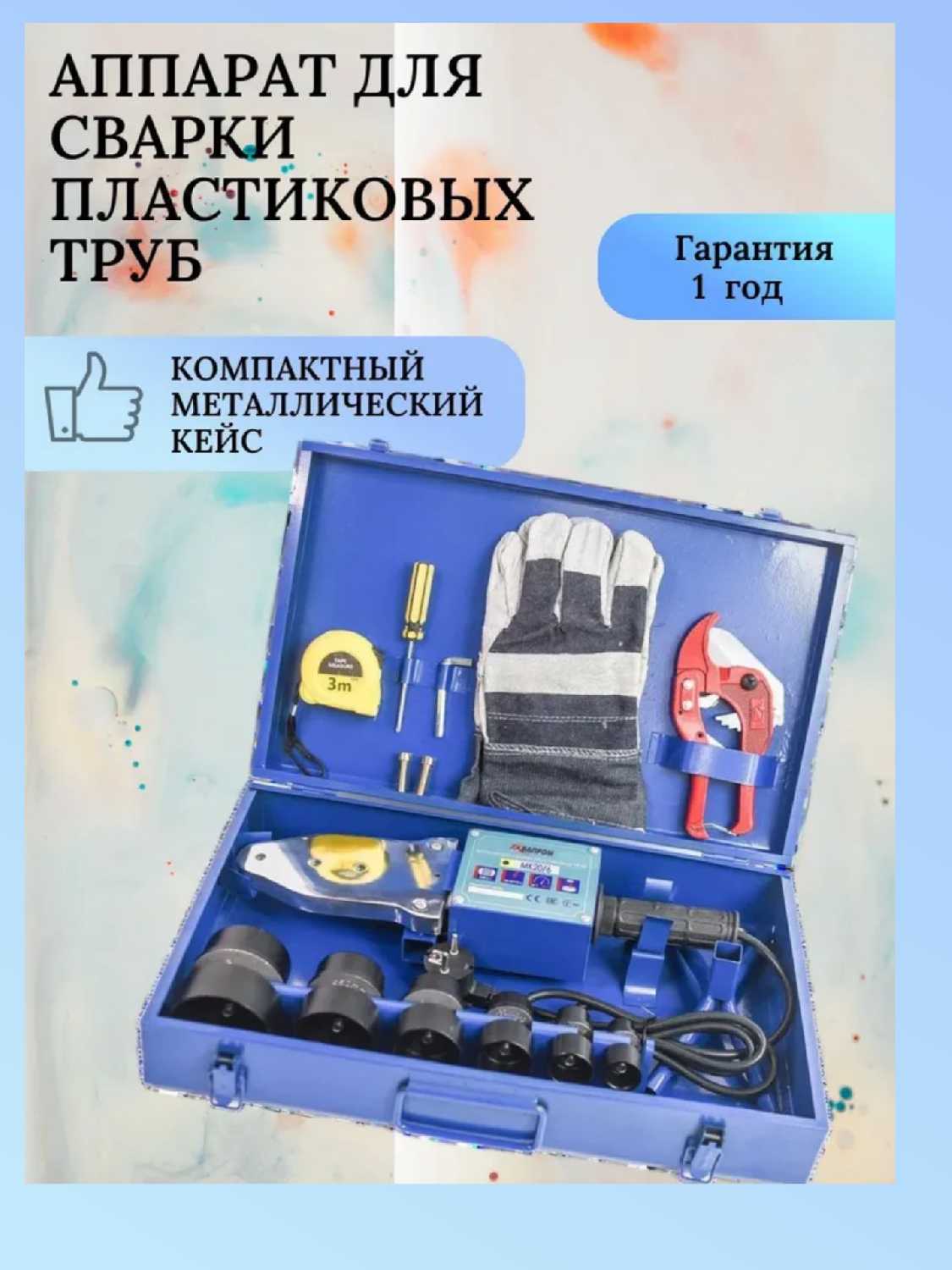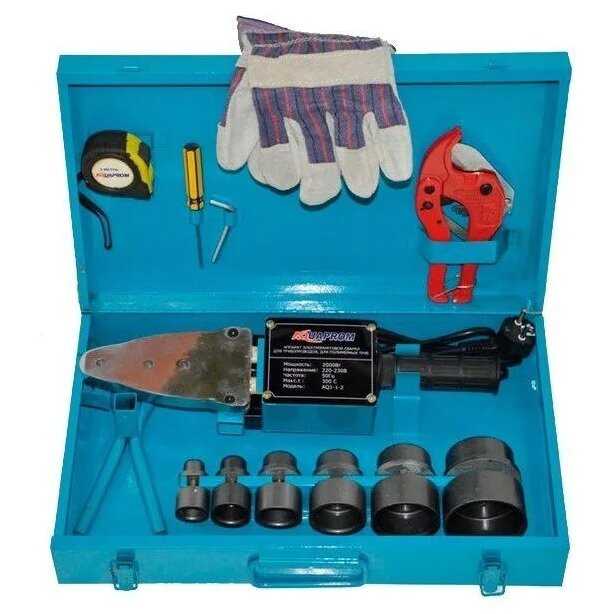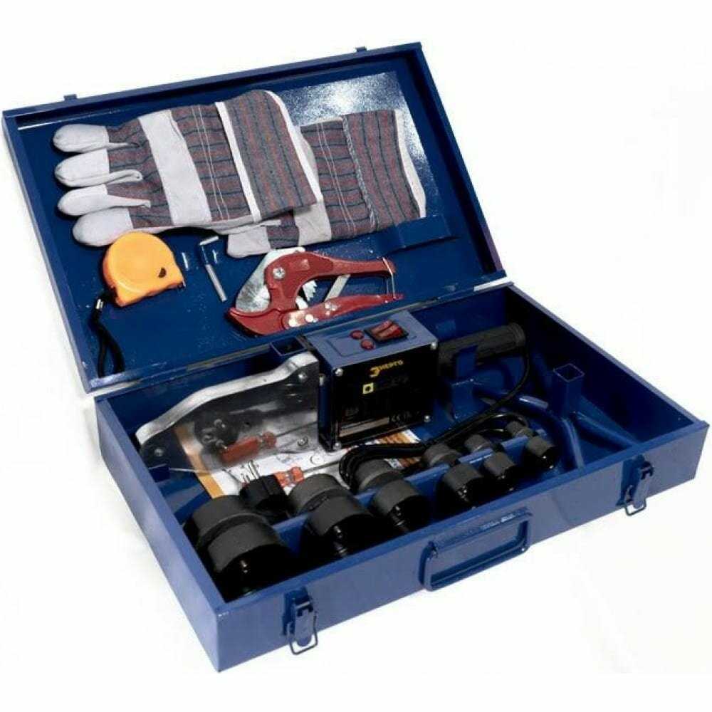 - Включает насадки для труб диаметром 20–63 мм, что покрывает большинство бытовых задач (монтаж отопления, водопровода).