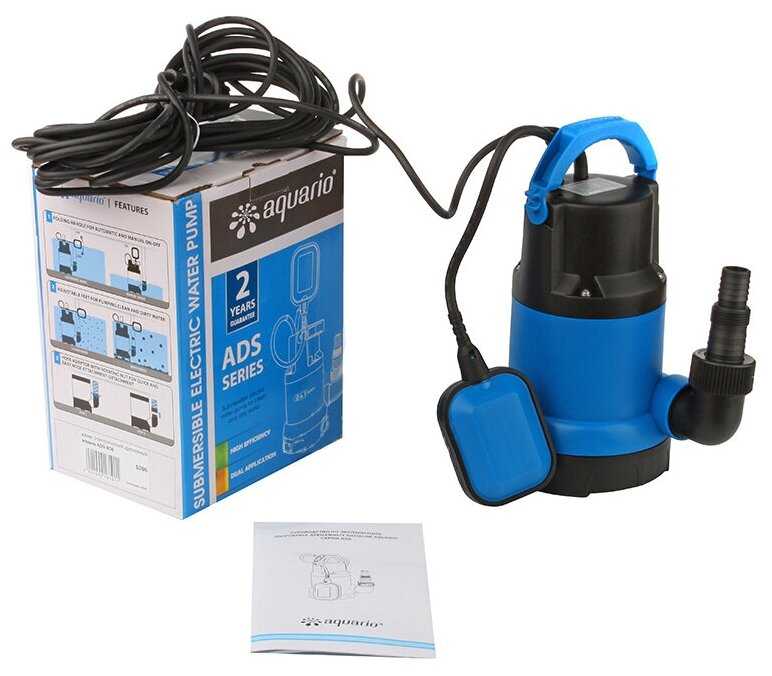 | Подробная комплектация : | 1. Насос Дренажный насос Aquario ADS-1700 в сборе с кабелем и поплавковым выключателем - 1 шт. 2. Угловой отвод с адаптером для шланга - 1 шт. 3. Руководство по эксплуатации - 1 шт. 4. Упаковка |