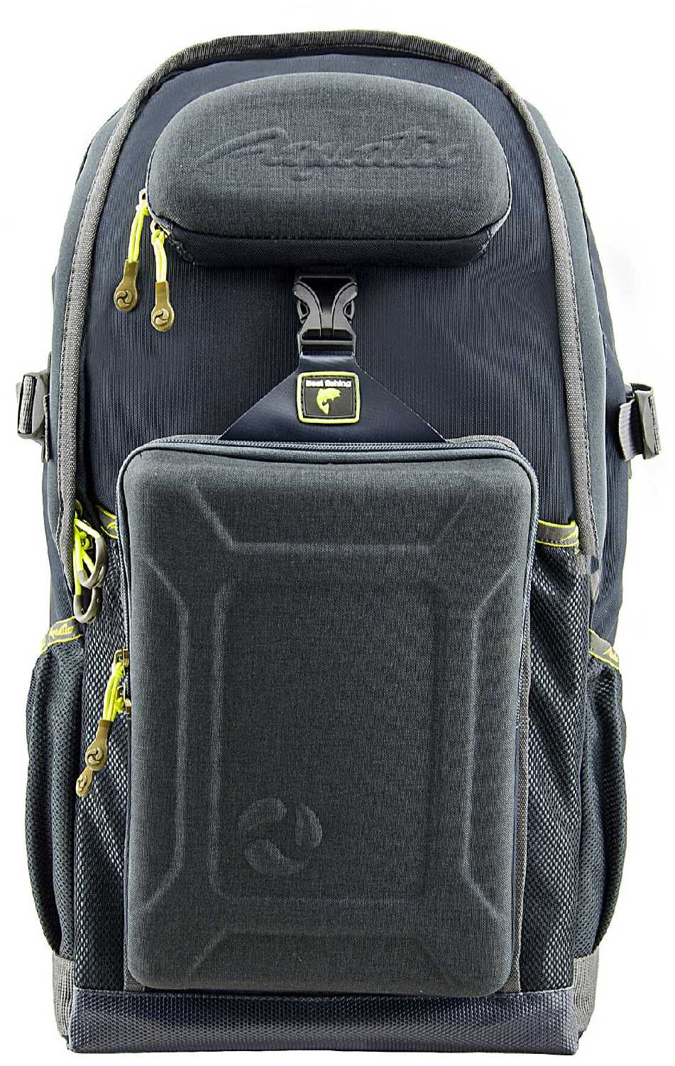 Рюкзак состоит из основного отделения, формованного кармана под коробку с приманками и очечника.