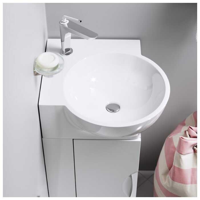 - + Великолепное решение, для угловой раковины в ванную. Главное, что относительно скромных размеров, раковина достаточно большая и удобная. Есть возможность ставить на столешницу, что для меня было важно. По сути ее можно установить на любую тумбу со столешницей.