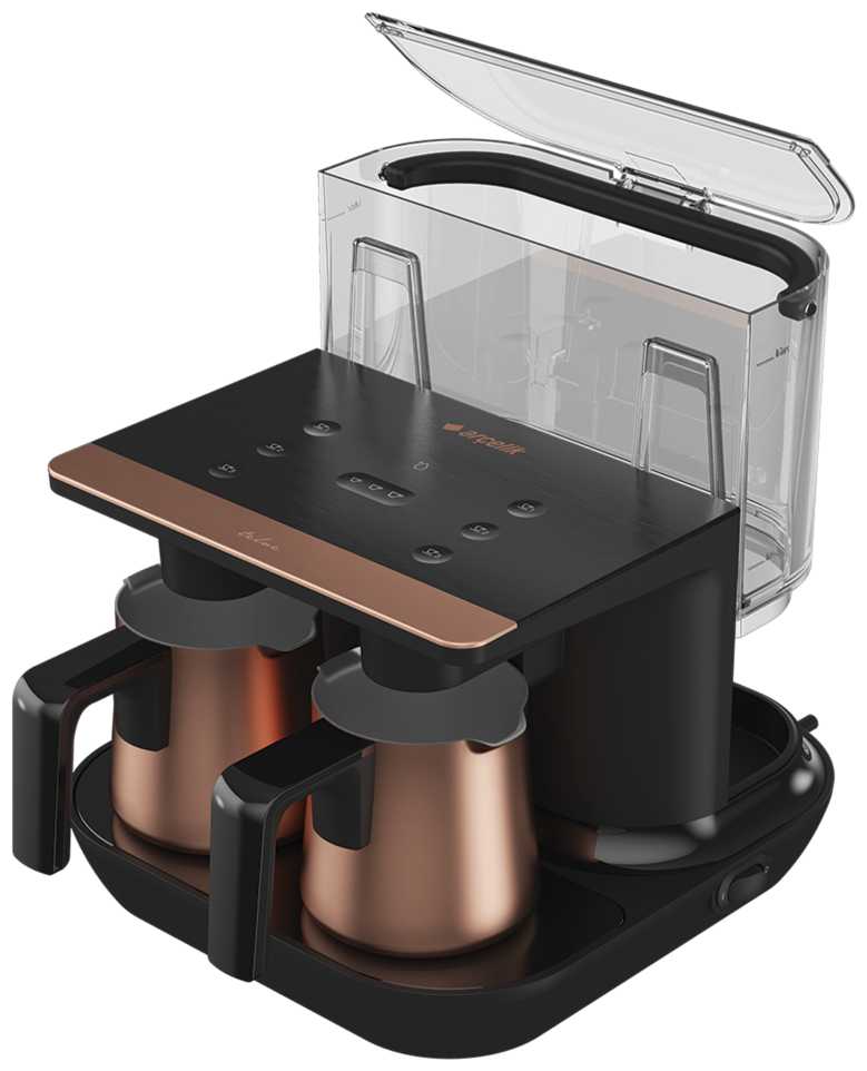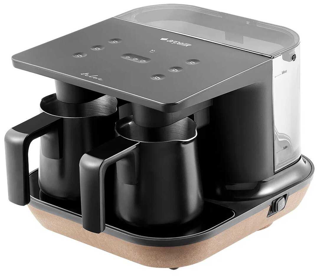 - + Эргономичный дизайн, варит вкусный кофе для 1 человека, или для целой кампании. Все функции автоматизированы: засыпал ингридиенты в турку, нажал кнопку и занимайся своими делами до звукового сигнала о готовности.