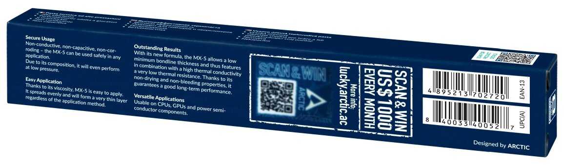 - Не высыхает и сохраняет свойства в течение 5 лет, как в случае с MX-4, но аналогично для MX-5 на i7-8700 с кулером GammaXX 400 (50-55 градусов максимум).