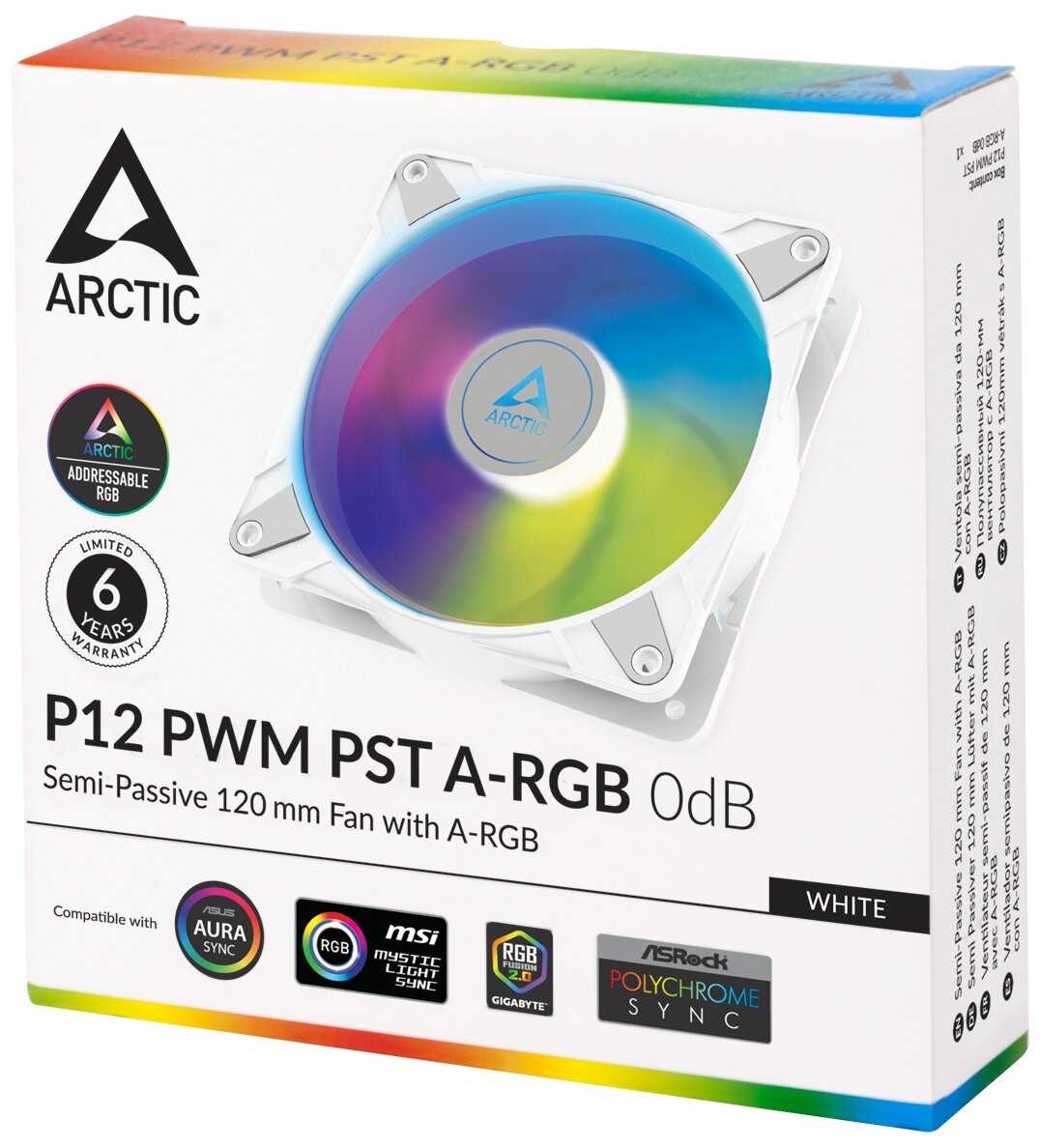 ШИМ PST RGB ARCTIC P12 оптимизирован для работы при высоком статическом давлении и обеспечивает эффективное охлаждение радиаторов и радиаторов. Скорость вращения вентилятора можно регулировать благодаря 4-контактному разъему и ШИМ PST, что обеспечивает минимальный уровень шума при максимальной производительности охлаждения.