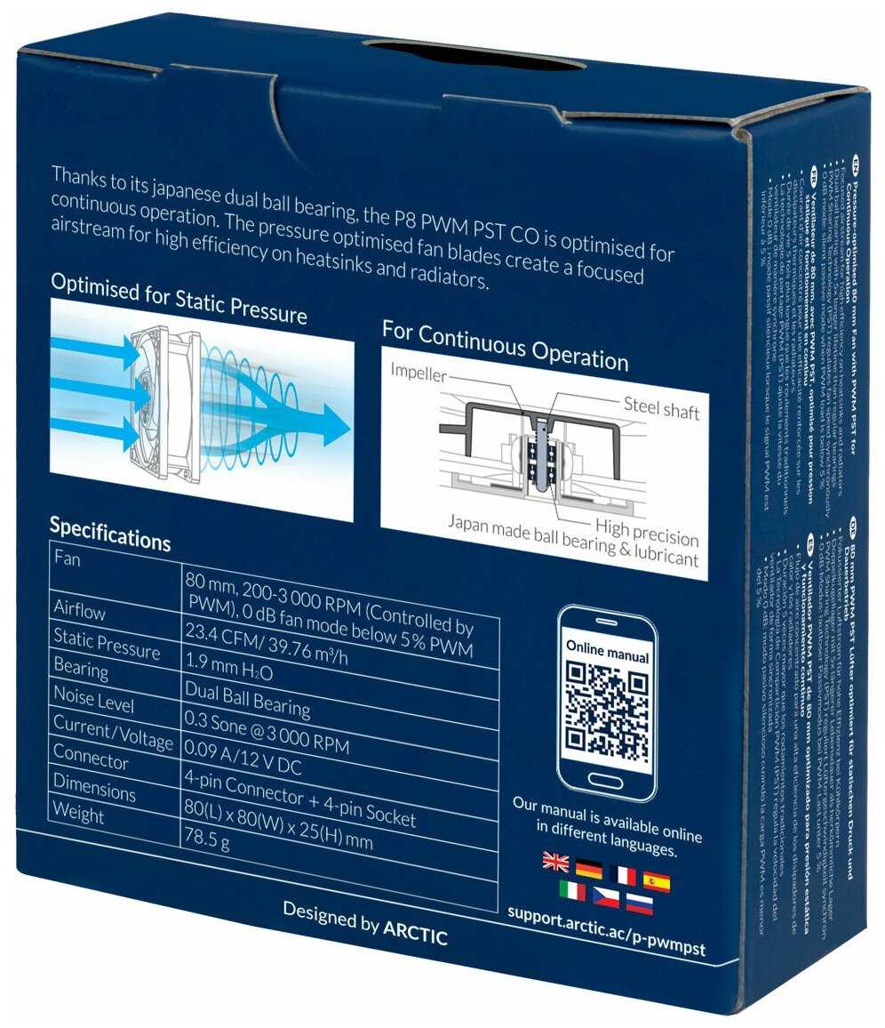 Очень тихий; качественный, это сразу ощущается на ощупь; 2 радиальных подшипника; не типичный кулер, на коробке указан направленный поток воздуха